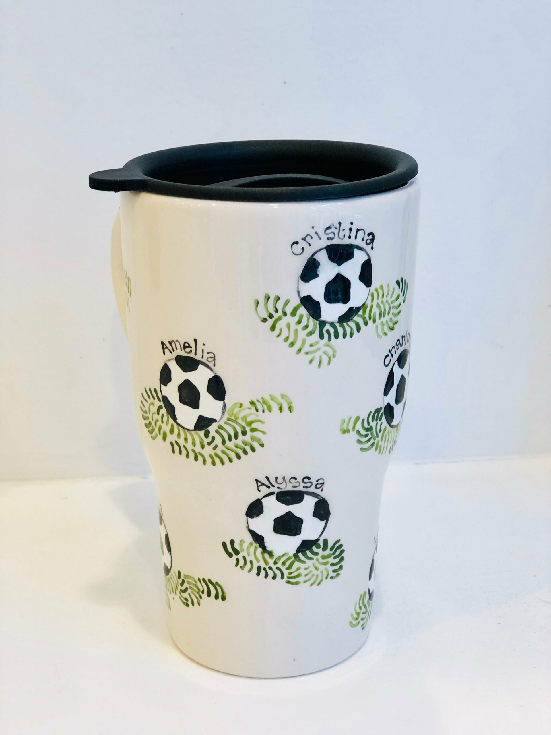 Looking for the perfect way to show your coach your appreciation? Let us paint a fully customizable travel mug for them. Not matter what sport.