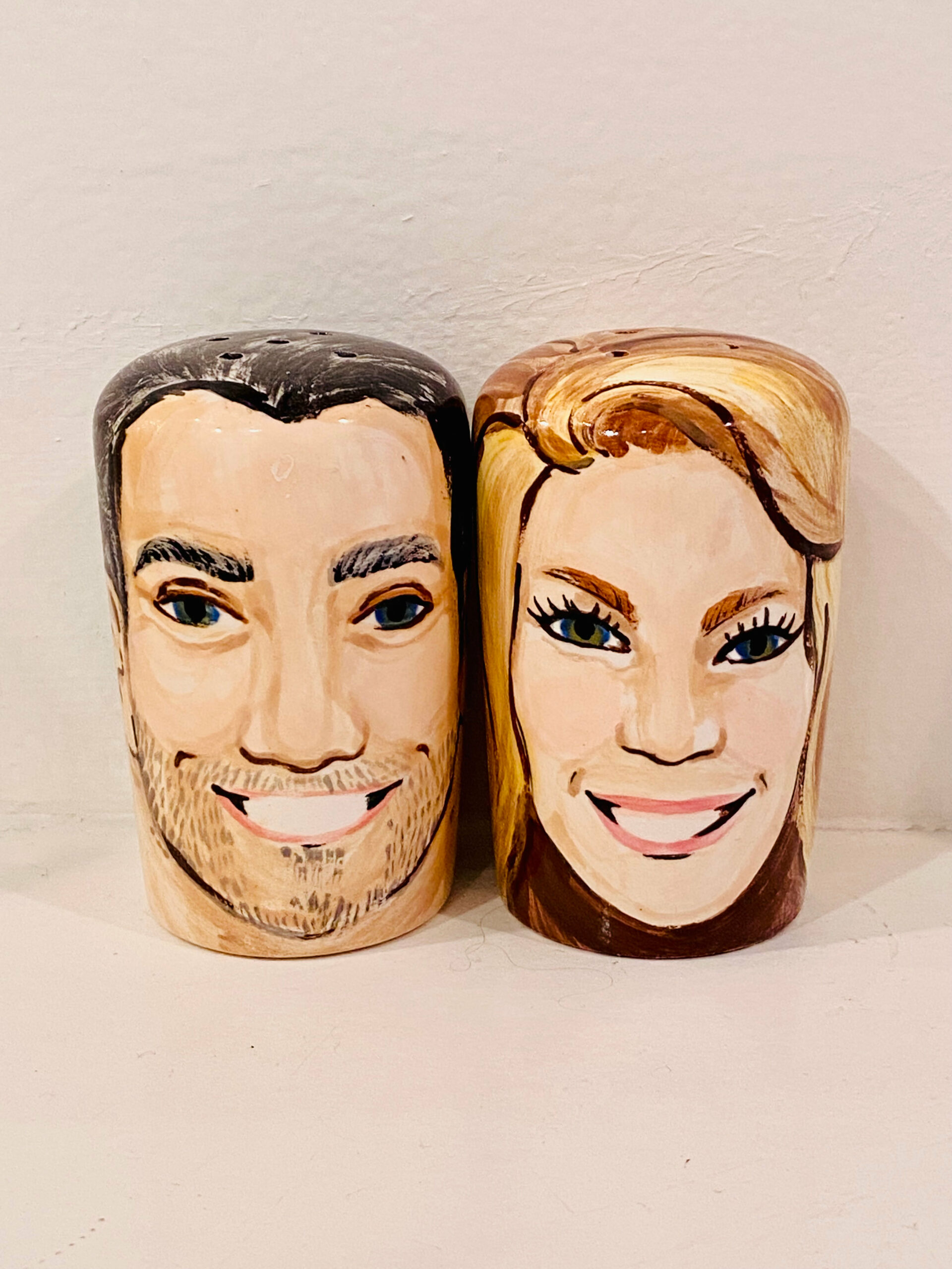 Who’s “salty” in your relationship; and who has the “pep”?!! These salt and pepper shakers can be yours @ Rainbows Pottery Studio! All we need is a picture of the happy couple!