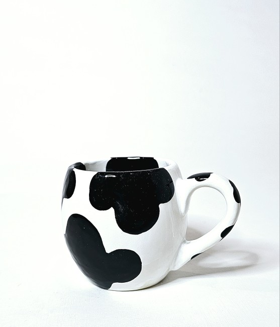 Introducing our delightful Cow Mug, a charming addition to your morning routine! Crafted with durable ceramic, this mug features a whimsical design of a black-and-white Holstein cow, complete with endearing details like big, soulful eyes and a playful expression. Hand painted by a local artist from Massachusetts capturing the rural country life. This ceramic mug is dishwasher, food safe, and microwavable!